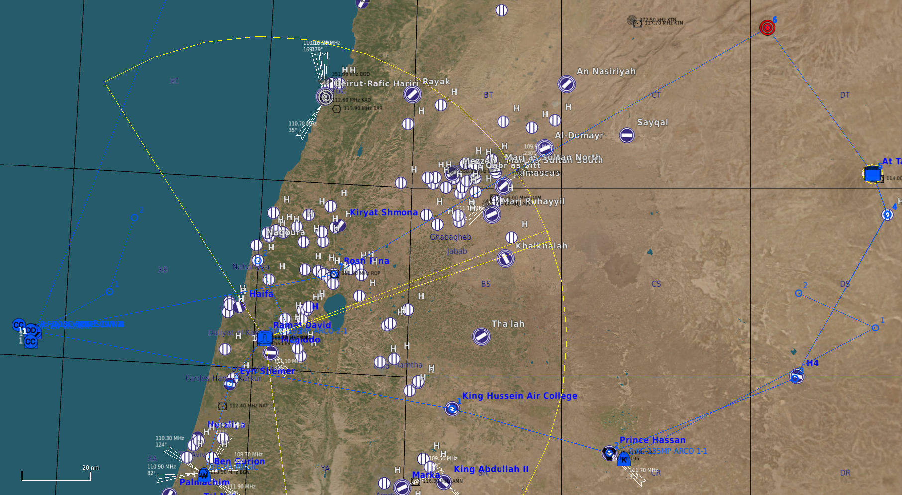 Nous passerons donc d'abord par le sud de la frontière au dessus de la Jordanie avec un Ingress par la verticale AT TANF, TGT et retour direct par Israël.