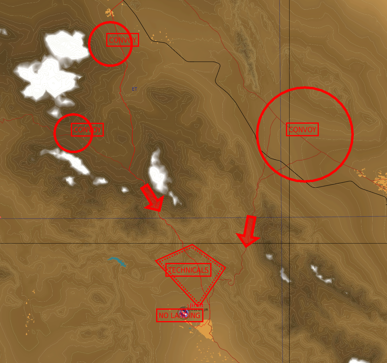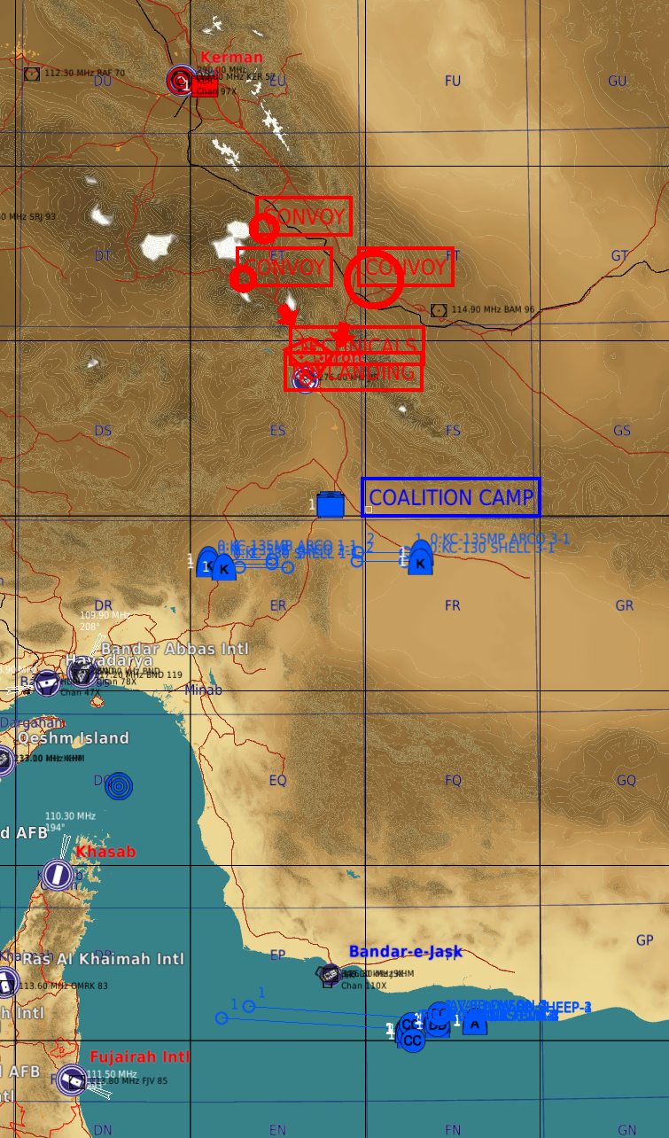 Nos renseignements ainsi que la collaboration avec le nouveau gouvernement, nous ont permis de loger leur point logistique principal : Les installations minières abandonnées de SHARKYHA à 25NM au sud-ouest de PALMYRE.