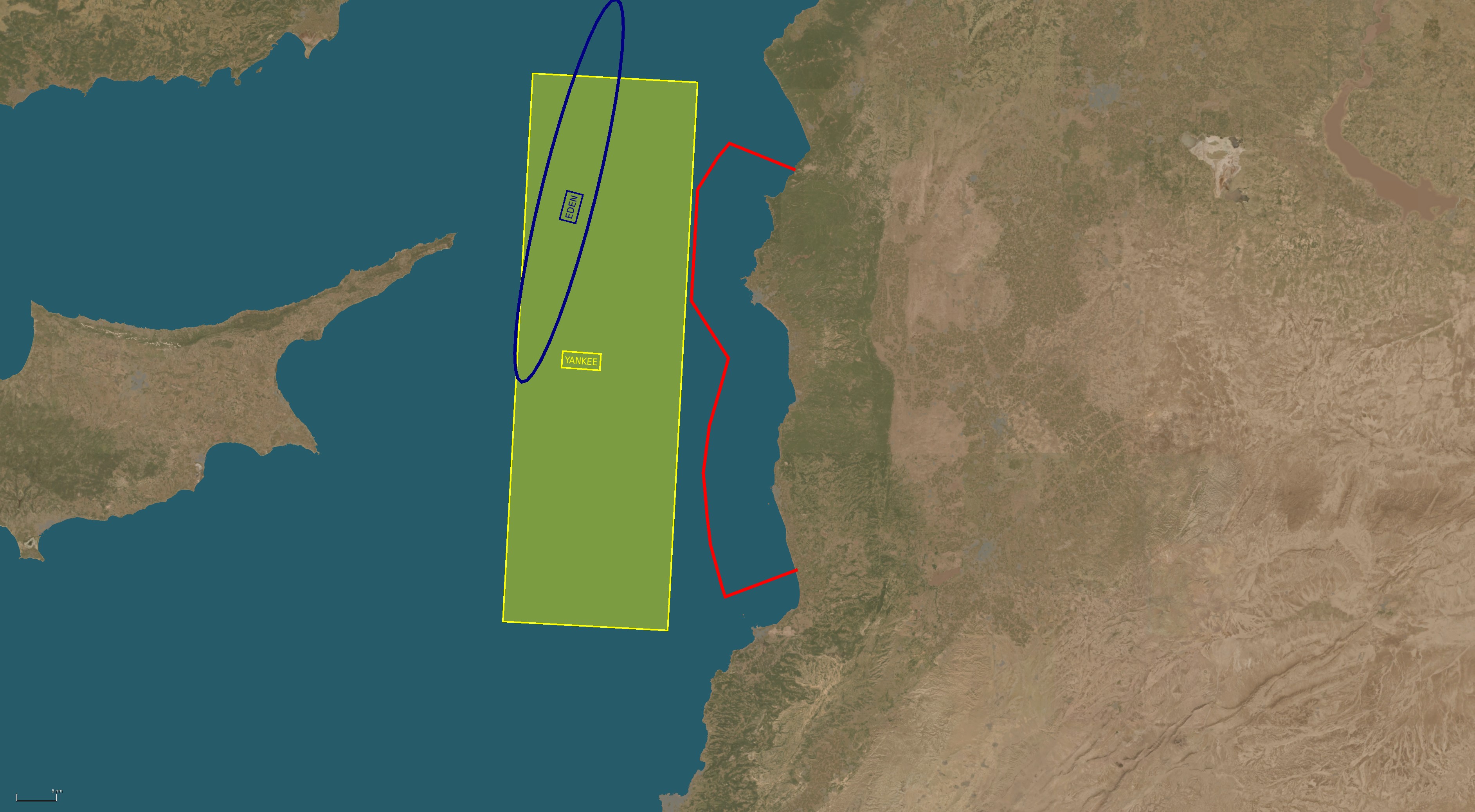 Une livraison d'armes destinées à l'EI est en cours. Un cargo du type Ivanov doit décharger clandestinement sa cargaison d'ici une ou deux heures. On sait qu'il mouillera à quelques encablures des côtes syriennes non loin de la frontière turque au nord de la ville de Latakia (N 35 31 32 E 35 47 07). Des vedettes rapides feront ensuite la navette pour débarquer les armes à terre. La zone de recherche est en jaune, codeword YANKEE Départ du Roosevelt.  Objectifs / Groupes / Désignations de cibles :