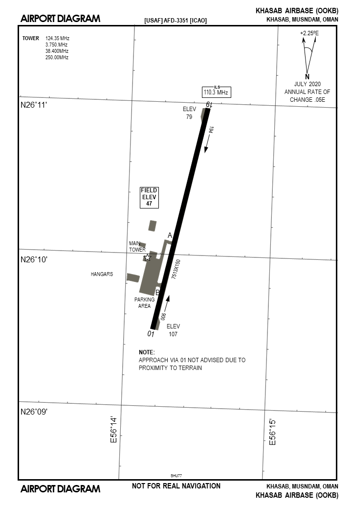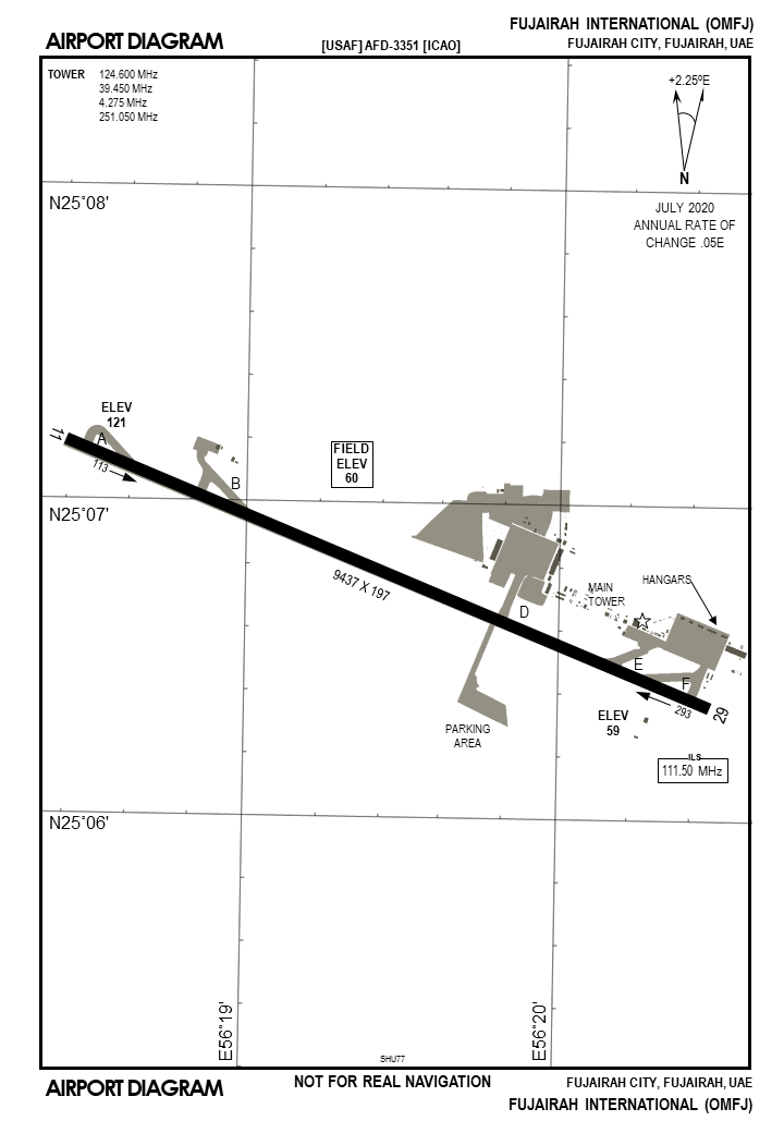CARRIER - ATC, Tacan, ICLS: LHA-1 Tarawa - TCN 75X / ICLS CH15 R-05 HMS Invincible - TCN 5X CV-59 Forrestal - TCN 59X / ICLS CH19 CVN-71 Roosevelt - TCN 71X / ICLS CH11 CVN-72 Lincoln - TCN 72X / ICLS CH12 -------------------------------------------------------------------------------- AEROPORTS ATC, VOR, ADF Fujairah - ATC 1 / TCN 101X / ATIS 124.60 Mhz Khasab - ATC 2 / TCN 35X / ATIS 124.35 Mhz -------------------------------------------------------------------------------- AWACS, EWR E2 Wizard - 327.45 AM -------------------------------------------------------------------------------- TANKER - Tacan, Radio AM Arco 1 KC-135MP - TCN 41X - 138.10 AM Arco 3 KC-135MP - TCN 48X - 316.80 AM Shell 2 -S-3B Roosevelt - TCN 43Y - 138.30 AM Shell 4 -S-3B Forrestal - TCN 47Y - 138.30 AM Texaco 1 KC-135 Secteur YJ - TCN 45X - 138.40 AM Texaco 3 KC-135 Sud Qeshm - TCN 50X - 135.60 AM -------------------------------------------------------------------------------- Avions disponibles: