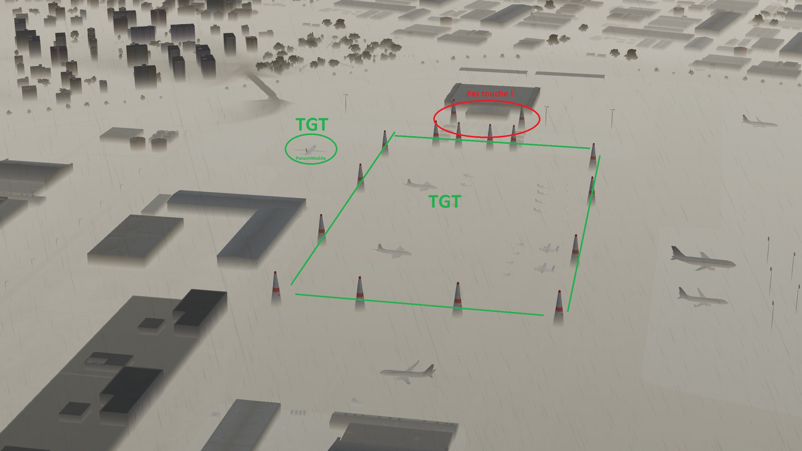 Si tir sur coordonées, SLAM en mode TOO conseillé. Les JDAMs ça n'aime pas le vent ! - La météo n'étant pas top, l'exposition n'est pas encore ouverte. C'est l'occasion de la pourrir. Ne pas toucher à la foule en attente. Casser la TotochMobile.