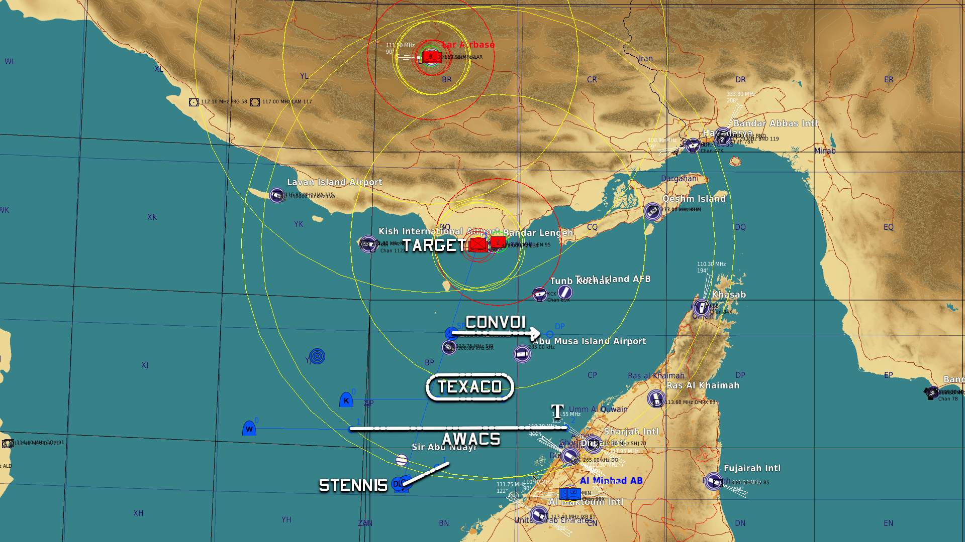 Package Maverick (Chasse)- La supériorité aérienne doit être maintenue pendant toute la durée de l'opération. Des départs de Lar, Bandar Lengeh, Bandar Abbas et Shiraz sont à prévoir.