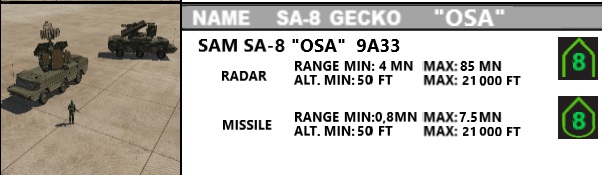 Système OSA, SAM IR et AAA sur aérodromes Syriens.   Chasse Syrienne : Mig23, Mig25 et Su25 Chasse Russe : Su27 et Mig31  Convois terrestres rebelles   Autres informations :