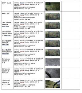 Relever coordonnées précises du chargment déployé des camions: materiels, caisses, containers ou autre. • Identifier et géolocaliser toutes menaces AA (MANPADS / SAM mobiles / radars portatifs).