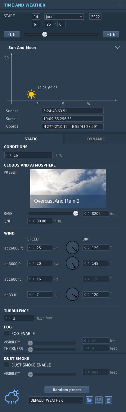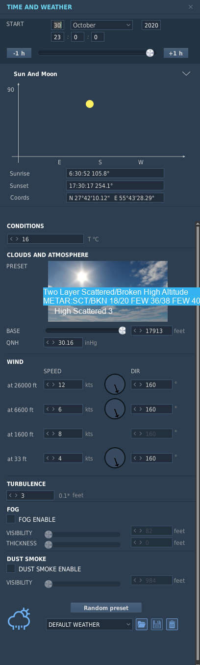 OVC 2 + pluie  WPT1: IP dans l'axe de la 05 de Queshmn, 17Nm WPT2: Seuil de la 05 (strike) Avions disponibles: