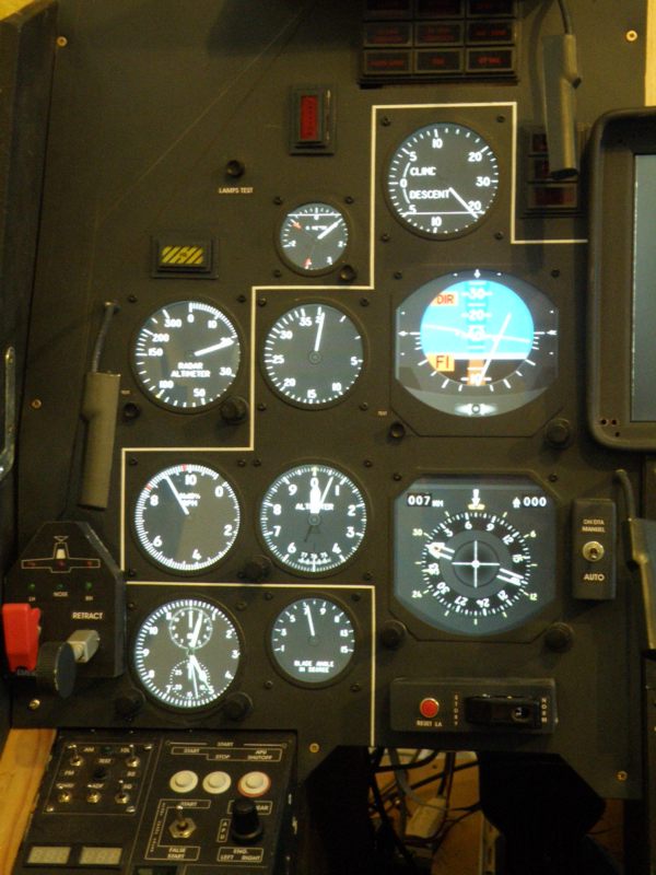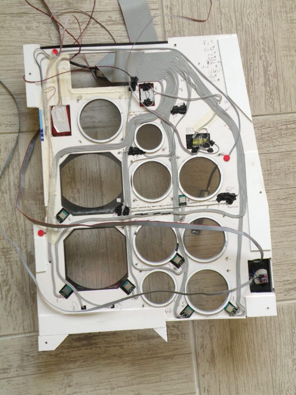 quelques images de l'avancement de cet hiver travail sur le câblage du panel gauche cette partie fonctionne enfin correctement un oubli le bouton test du HSI faudra redémonter le tout si j'ai le courage pour le rajouter les photos : panel endroit, panel envers avec son câblage, l'écran 19" avec les indicateurs Hélios, le panel en habillage sur l'écran, voyants allumés A+ |