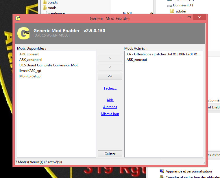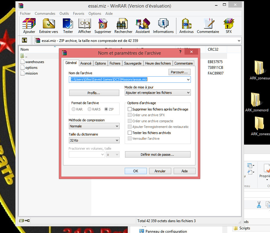 par défaut on a 8 aéroports présélectionnés principalement du nord de la Map , ce qui complique quand on est dans le sud ou l'est de la Map j'ai créé un dossier pour chaque zone Nord Est Sud avec le fichier ARK.lua associé . EST NORD SUD ce dossier peut etre changé rapidement avec JSGME , ( 10 secondes ) enfin pour que les autres pilotes puissent avoir les meme parametres ADF , la méthodes : ouvrir le fichier miz de la mission ouvrir le dossier de la zone choisie mettre que le dossier mods téléchargez les 3 dossiers ici : fichiers ARK JSGME A Nous les modules NAV du cursus tant que vous y êtes il y a les skin 319th et les patches des tenues Ce message a été modifié par gillesdrone - 28 Dec 2014, 20:31. --------------------