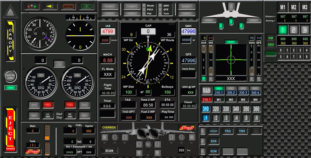 Juste pour info. les F15, je vous oublie pas J'ai bossé ce matin sur la radio pour changer certaine couleur, j'ai refais le tachometre du F15, et je suis sur les conversion pour votre panel de nav., çà arrive, ce soir je pense Miaou Extrême hâte de tester celà !!! sait tu si ont peut avoir des menus cliquable comme touchbuddy? --------------------