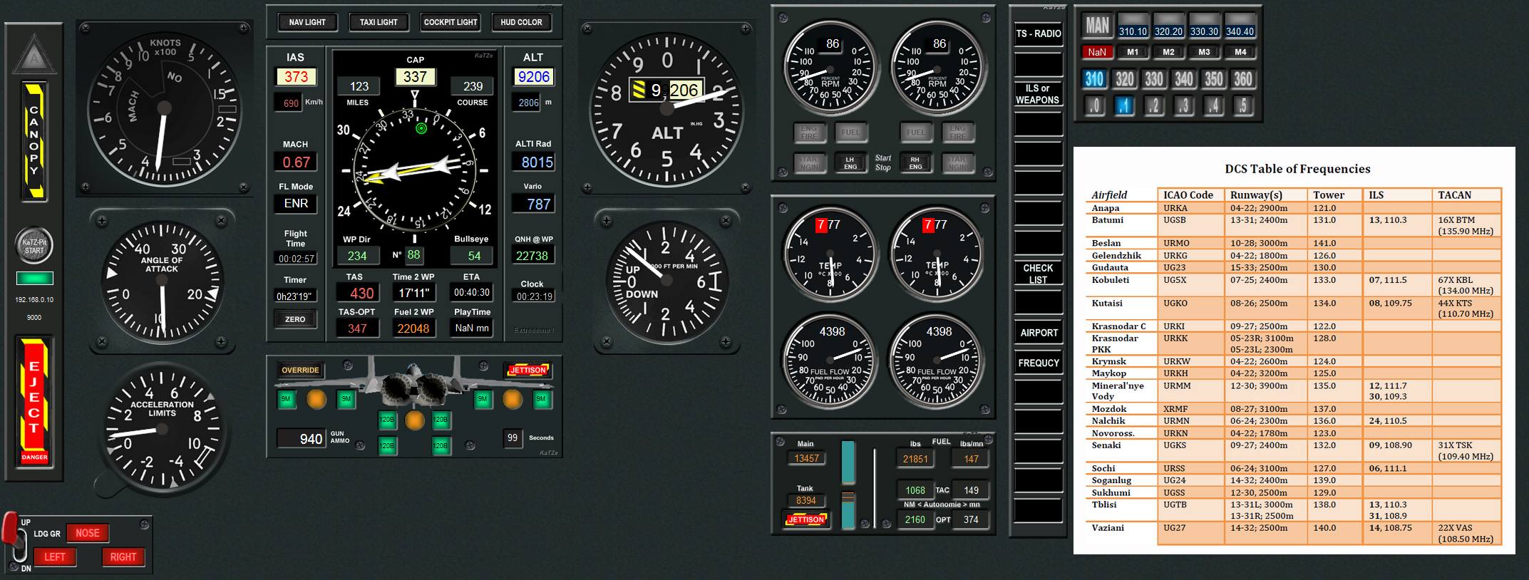 Comme Postal avait l'air un peu décu du visuel, j'ai tout repris pour travailler sur cet aspect Je pense que comme çà tu ne sera pas trop dépaysé PS, tu peux voir à droite l'affichage des check-list (ici la table de fréquence) Donc à priori c'est terminé Seul bémol, l'AoA qui exporte des valeurs très très étrange, impossible de faire coïncider avec l'affichage, contrairement aux autres pit ... donc j'ai fait en sorte que çà soit à peut près juste dans la bande 0-15° Voici le dernière rendu visuel (ps c'est mieux en vrai because ici il y a la compression jpeg Miaou --------------------