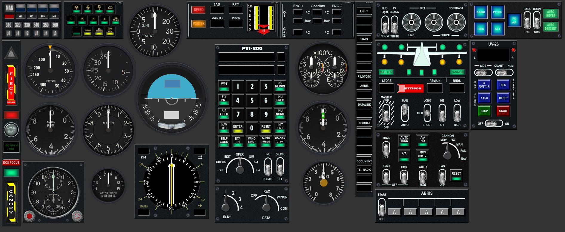 Photo en "layout-combat" Reste à paufiner les affichages PVI-800 et UV26 (faire apparaitre les zero non significatifs, les apostrophes de lon/lat ...). A voir si certains souhaitent d'autres infos. ? Ce que je vais peut être faire c'est une version "panel only", sans les cadrans pour ceux qui veulent juste afficher les panels light/pvi/demarrage+elec/weapon etc etc ... sur un petit écran 4/3 Possibilité aussi d'ouvrir 2 KaTZ-Pit, sur 2 écrans un avec les cadrans, l'autre avec les panels ... Miaou Ce message a été modifié par KaTZe - 1 Mar 2015, 13:51. --------------------