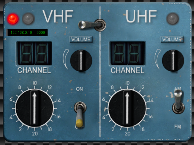 J'ai commencé de bosser sur la version stand alone, et j'ai pris le parti de simplifier au max, pour un fonctionnement optimal même sur des machines peu puissantes (téléphone). Idem pour l'interface de connection, je te propose de virer complètement le panel de connection au KaTZ-Link. Le démarrage du Panel se faisant simplement quand on bascule le "Bouton On" de la radio. J'ai ajouté un voyant rouge tant qu'on est pas connecté, ainsi que l'indication de l'adresse IP de configuration. Une fois le panel démarré, ce voyant (rouge) peut soit passer au vert, soit off, soit disparaitre. La zone d'adresse peut aussi disparaitre puisqu'on en a plus besoin. What dayathink Ca reste ainsi minimaliste, et totalement irl-lookalike une fois démarré Ce message a été modifié par KaTZe - 8 Oct 2015, 10:22. --------------------