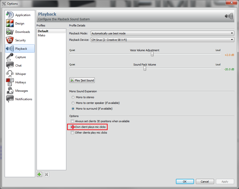Une question à ce sujet : Si j'ai bien compris Le pschitt est déclenché lorsque l'on fait une pause dans la phrase, avec le phénomène décrit par Hono en voice activation. Dans le cas ou l'on est en push 2 talk, est ce que le pchiit est alors déclenché par le relachement du contacteur? (i.e. si on fait une pause dans la phrase, et que l'on reste appuyé, alors pas de pchiit) ? Sinon, avec le réalisme du système, on en vient à regretter que les voix soient trop nettes ... fut un temps on avait un petit plug-in masque à oxygen qui était top pour çà ... Le "pschitt" ![]() se fait au relâchement du PTT. Le Voice Activation est incontrôlable, donc à proscrire. Pour l'effet masque je ne l'ai pas implémenté sur cette version. Il faut que je trouve une solution de "qualité". |