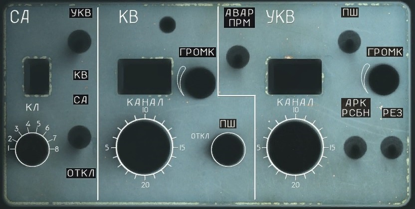 Le Panel décrit dans l'UCE du Cy-27 Le Radio Panel dans DCS Dans ce dernier on constate la présence du boîtier radio cryptée SD qui peut travailler en VHF ou UHF et qui est destiné au DataLink entre les avions, sur 8 canaux possibles. Par ailleurs, à la droite de KB, il existe bien un voyant indicateur d'activité sur la radio (mais qui est inactif dans DCS. Radio communication en clair sur les gammes 100-150 MHz et 220-400 MHz jusqu'à 350km en portée optique Transmission cryptée A-A, A-G dans la gamme des 2-18 MHz jusqu'à 1500km ПШ: interrupteur du sqwelch ГРОМК: réglage du volume АРК РСБН: ARK RSBN = système automatique de radionavigation à l'aide de balises Рез. РС: Utilisation de la radio cryptée Авар.ПРМ: écoute des messages d'urgence dans le casque (Panne systèmes hydrauliques, feu moteur gauche/droit, panne SDU, angle d'attaque max, facteur de charge max) КАНАЛ: canal KB correspond bien à la VHF et YKB à l'UHF Je te ferai un topo plus précis sur l'ensemble. --------------------