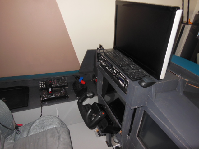 Je vais commencer par me présenter un peu. Je fais de la simu depuis de nombreuses années et j'ai commencer avec de soft comme Falcon sur Atari (l'ancetre de Falcon3.0 et BMS) , si si , ça Atari a exister à un moment. Mais depuis, je m'étais orienté vers la version civile et donc beaucoup de FSX, d'autant plus que j'ai eu l'occasion de piloter réellement à plusieurs reprise sur des petit avion , type DR400. Pour cela je m'était construit un pit, assez encombrant (à peu près du 3mx2.5m). Mon pit est multi-avions compatible, et je l'ai même utilisé avec Lock On.s Je viens de "découvrir" DCS (entendons par là : m'équiper de DCS) et j'avoue que je craque de nouveau sur la simu militaire, et donc avoir une version cockpit pour ce soft assez génial. J'ai parcouru le forum, et j'avoue que vous m'impressionnez tous par les solutions que vous avez créées et aussi par le dynamisme qui anime votre groupe/collectivité. Mais trêve de blabla. Mon pit a une structure qui n'est peut être pas courante : - tout tourne sur un seul PC (un portable assez puissant). - je n'utilise pas l'écran du portable - j'utilise 3 écrans, un 24" pour l'affichage vue extérieure (ou plustot vue du pilote), et 2 écrans tactile pour les instrument du cockpit (un 22" et un 19"), connectés au laptop via usb3 + DVLink - j'ai en plus quelques accessoire d'entrée (bouton et curseurs), de type VRinsigh - et enfin bien sur, un palonnier et joystick Je recherche une solution logicielle pour afficher sur les 2 écrans bas un cockpit (si possible clickable), que je pourrait éventuellement adapter suivant l'avion utilisé dans DCS (SU27, F15 ou même un vieux coucou de la seconde guerre). J'ai vu qu'il y a différentes approches, mais je ne cerne pas bien des avantages et limites des unes et des autres. Pouvez vous me guider dans ce choix ? ======================================================= PS : voici une photo du pit, les écrans tactiles sont dans la partie intérieure |