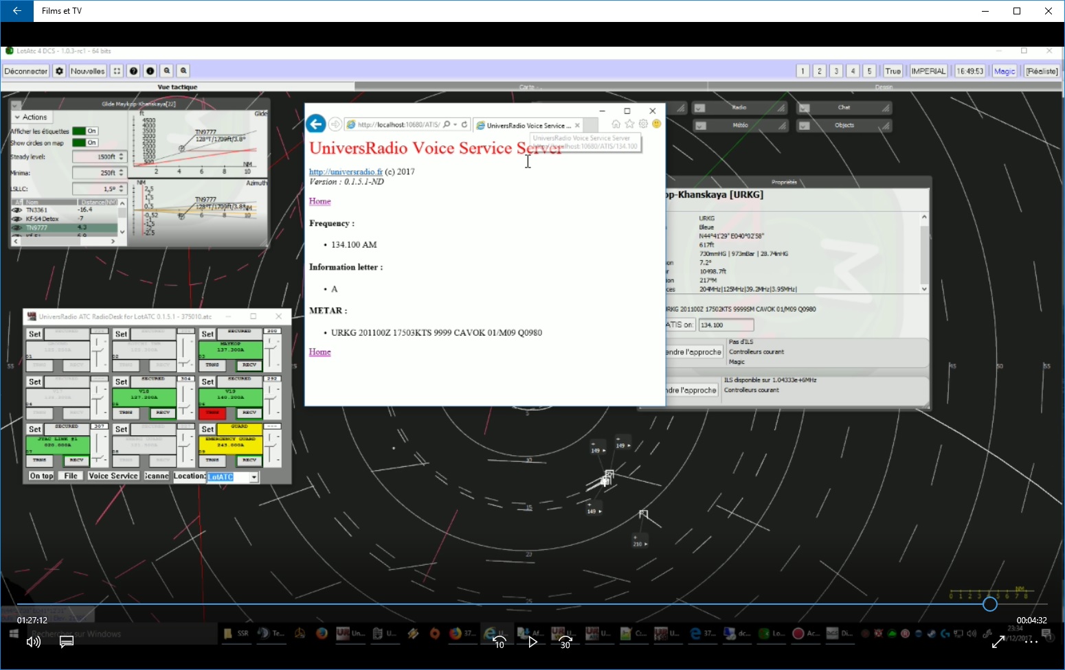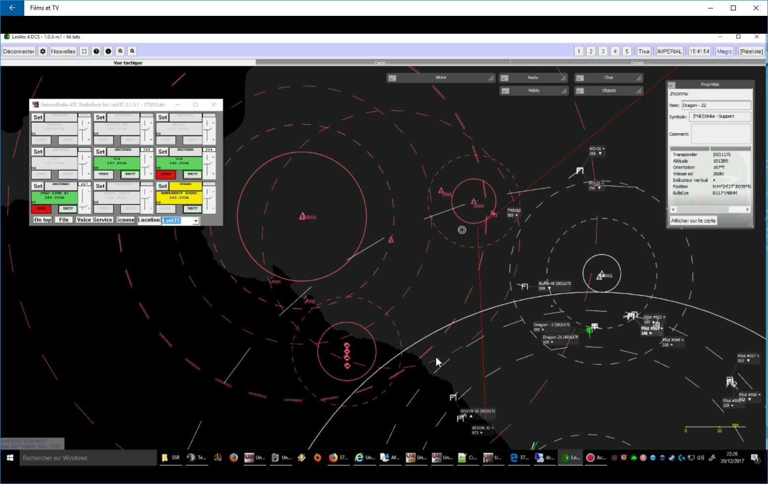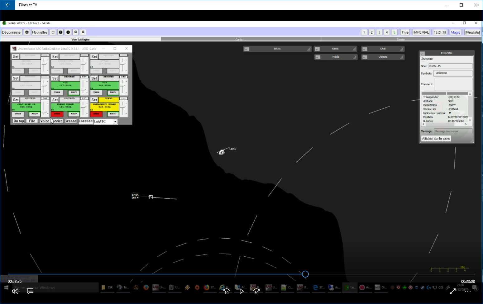 J'avais entrepris une vidéo, mais pb technique faisant ce ne sera que quelques copies d'écran. Hormis la mission où les leaders et pilotes commencent et continuent à suivre le schéma proposé : un briefing donné plusieurs en avance, des ordres de missions (ATO) aux quels s'inscrivent les patrouilles, nous avons pu tester hier soir le couple UniversRadio et LotATC ( 1.0.3-rc1 ). C'est à dire le transpondeur avec les MODE1 MODE3 MODE4. Pour rester dans la vision de simulation, je peux conclure que le scope LotATC reçoit les interrogations du Radar Secondaire. Bravo DArt ! Etiquette (LotATC realistic) + UR Transponder (FC3) et DCS:A10C IFF ON sp@t en Emergency 7700 : METAR envoyé à UR VSS : Etiquette courte : Ce message a été modifié par Tacno - 21 Dec 2017, 10:21. --------------------