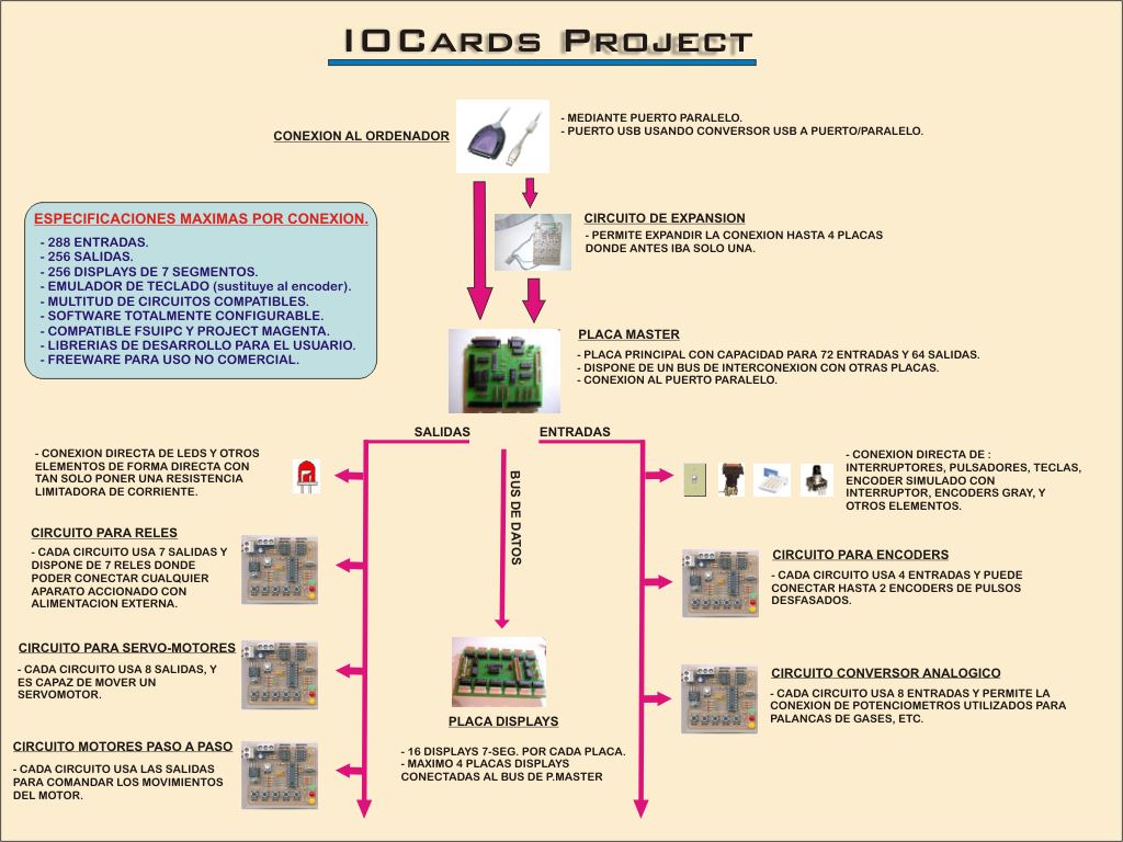 QUOTE(Lynx @ 1 Oct 2005, 14:29) Salut Specnaz, je suis allé voir le site des IOCards, mais je n'ai pas tout compris, elles combinent les fonctions des X-keys et des I2C ? A savoir, branchement des boutons et gestion des Leds ? Emulent elles des claviers virtuels comme les X-keys, et combien de fonctions gèrent-elles....??? Voilà, désolé de poser tant de questions, mais le sujet est passionnant... Salut, ecoute c'est un système qui peut gerer des leds, des moteurs pas a pas, des servos, des afficheurs digitaux, des interrupteurs, des rotacteurs , des encodeurs, et à priori qui possède un module emulation clavier ... voilà le shèma de principe, désolé il n'existe apparement qu'en espagnol... Ce qui est interressant c'es le mode de diffusion...j'entends par là que le principe de base et les plans sont gratuits !!!! en fonction de l'equipement et du niveau en electronique de chacun, tu peux soit télécharger tout les plans et liste de composants et graver toi meme tes circuits imprimés, ou acdheter des kits prêts à souder, vendu au prix de revient, ou alors acheter une carte dejà montée et testée. A savoir qu'une carte master montée et testée ne fait "que" 56 euros environs !!!! soit bien moins chère que beaucoup d'autres systèmes... Voilà pour ce qui est du principe général |
