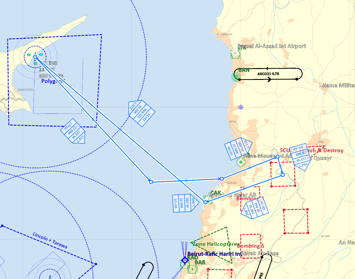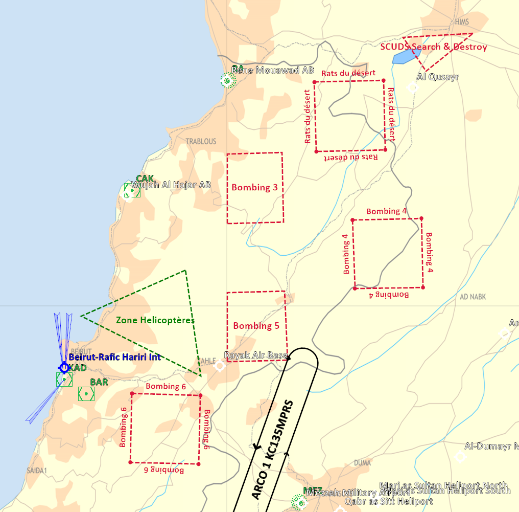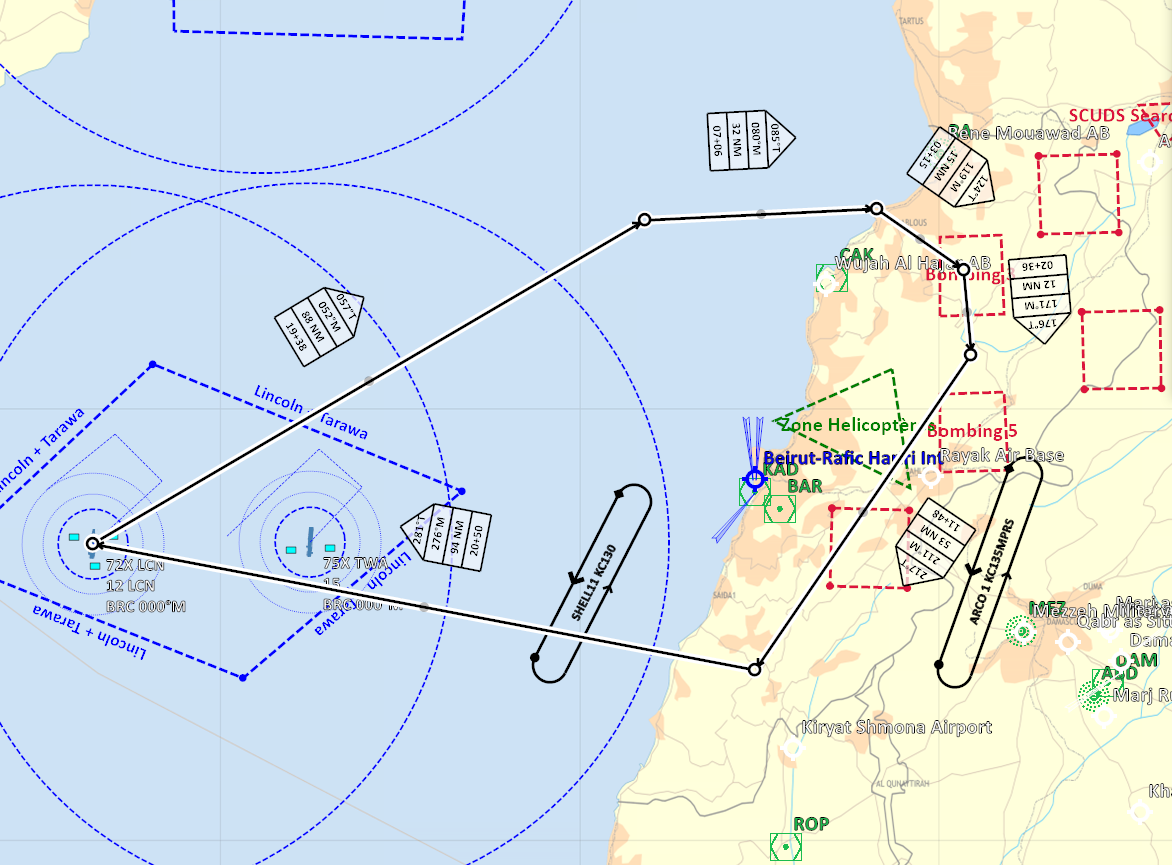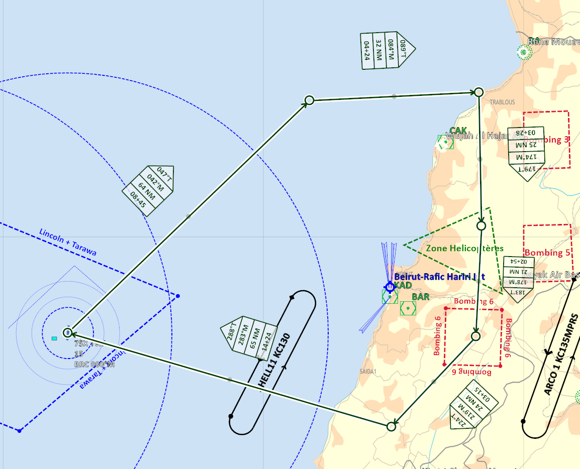 Profil de mission RVT > TBA > POP-UP > BOMB >TBA >RVT >RTB de nuit Décollage sans encombre des Sheep/Dyson et Devils, ravitaillement assez compliqué pour Mario, avorté pour moi. Les transmissions de coordonnées sont ok pour les dyson pas pour les sheep. Le format de coordonnées n'est pas le bon pour les devils. Les sheep feront leur entrainement sur coordonnées de carte. L'heure étant tardive seul Edd rentrera au PA. Mario testera les défenses aeriennes avec succès, Lamule se pose au liban, Lynx, Bruno et moi en plein territoire ennemi sur la base non défendue de Tiyas. Retex: -Coordonnées utilisables par les F/A-18 pour du ciblage précis - ex: N 35°01'39.22" E 36°14'22.71" 2354ft -Les VRistes ne voient pas le message leur demandant de télécharger via le menu RCALL quand ils ont le nez dans le pit. -Coordonnés pour menu RCALL des AV-8: Utiliser le menu F10 pour l'appel des coordonnées (solution qui marche en cours d'élaboration). -La nuit c'est dur! -Ecouter et comprendre son leader. Pouvoir lui dire aussi qu'il est "peut être" en train de faire une erreur. Ce message a été modifié par Oxitom - 18 May 2021, 11:16. --------------------