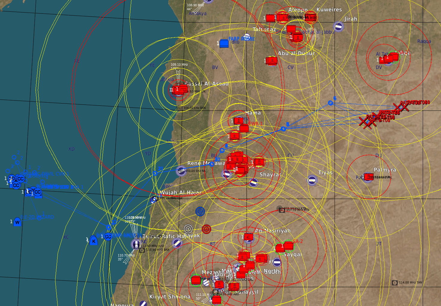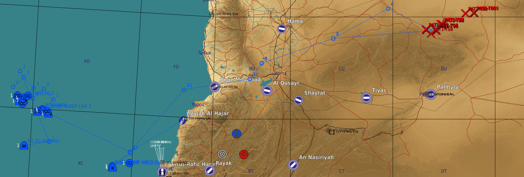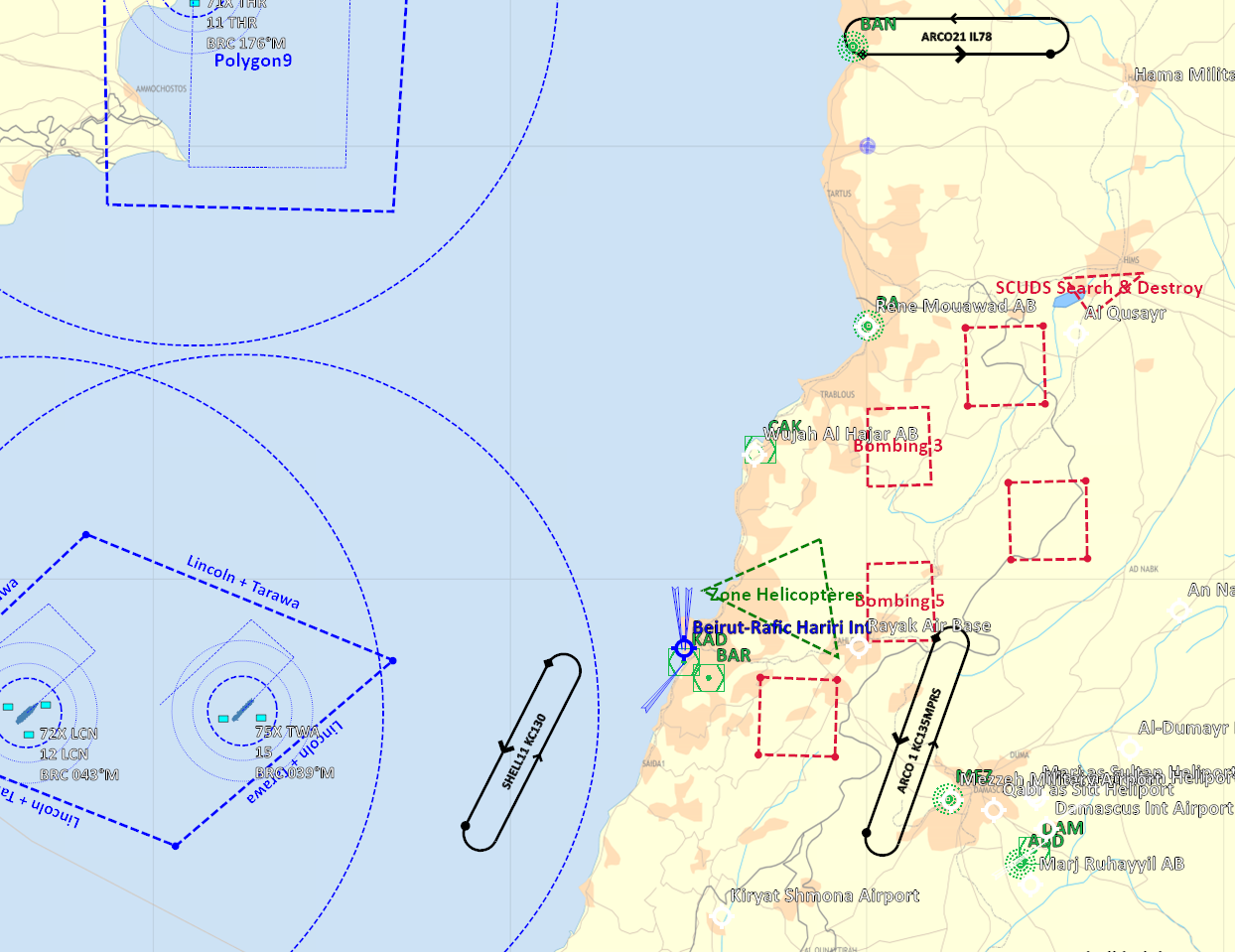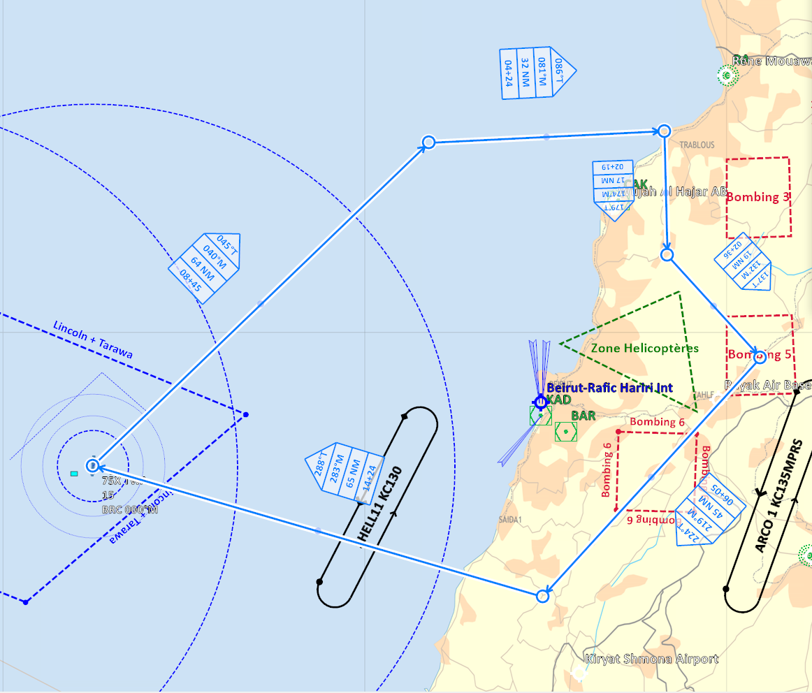 Profil de mission RVT > TBA > POP-UP > BOMB >TBA >RVT >RTB de nuit Décollage sans encombre des Sheep/Dyson et Devils, ravitaillement assez compliqué pour Mario, avorté pour moi. Les transmissions de coordonnées sont ok pour les dyson pas pour les sheep. Le format de coordonnées n'est pas le bon pour les devils. Les sheep feront leur entrainement sur coordonnées de carte. L'heure étant tardive seul Edd rentrera au PA. Mario testera les défenses aeriennes avec succès, Lamule se pose au liban, Lynx, Bruno et moi en plein territoire ennemi sur la base non défendue de Tiyas. Retex: -Coordonnées utilisables par les F/A-18 pour du ciblage précis - ex: N 35°01'39.22" E 36°14'22.71" 2354ft -Les VRistes ne voient pas le message leur demandant de télécharger via le menu RCALL quand ils ont le nez dans le pit. -Coordonnés pour menu RCALL des AV-8: Utiliser le menu F10 pour l'appel des coordonnées (solution qui marche en cours d'élaboration). -La nuit c'est dur! -Ecouter et comprendre son leader. Pouvoir lui dire aussi qu'il est "peut être" en train de faire une erreur. Ce message a été modifié par Oxitom - 18 May 2021, 11:16. --------------------