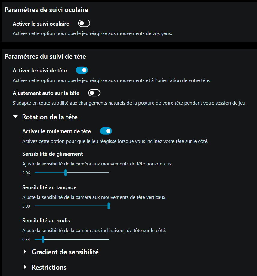a tout hasard, peux tu me faire une copie écran de tes parametres (par mp si tu preferes), afin d'avoir un petit aperçu des valeurs que tu as retenu. je sais bien que chacun a ses préférences ms ca donne une base de travail et un élément de comparaison. j'ai essayé de voler avec lors du vol 75th ms je n'avais pas du tout penser à la boutonnite lors de mes premiers réglages, du coup impossible de cliquer sur le bouton tant la sensibilité était haute!!!j'arrivais pas à choper les boutons! obligé de repasser au track ir en secours! |