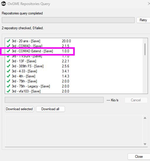 Mise à jour de synchro avec les missions COMAO officielles