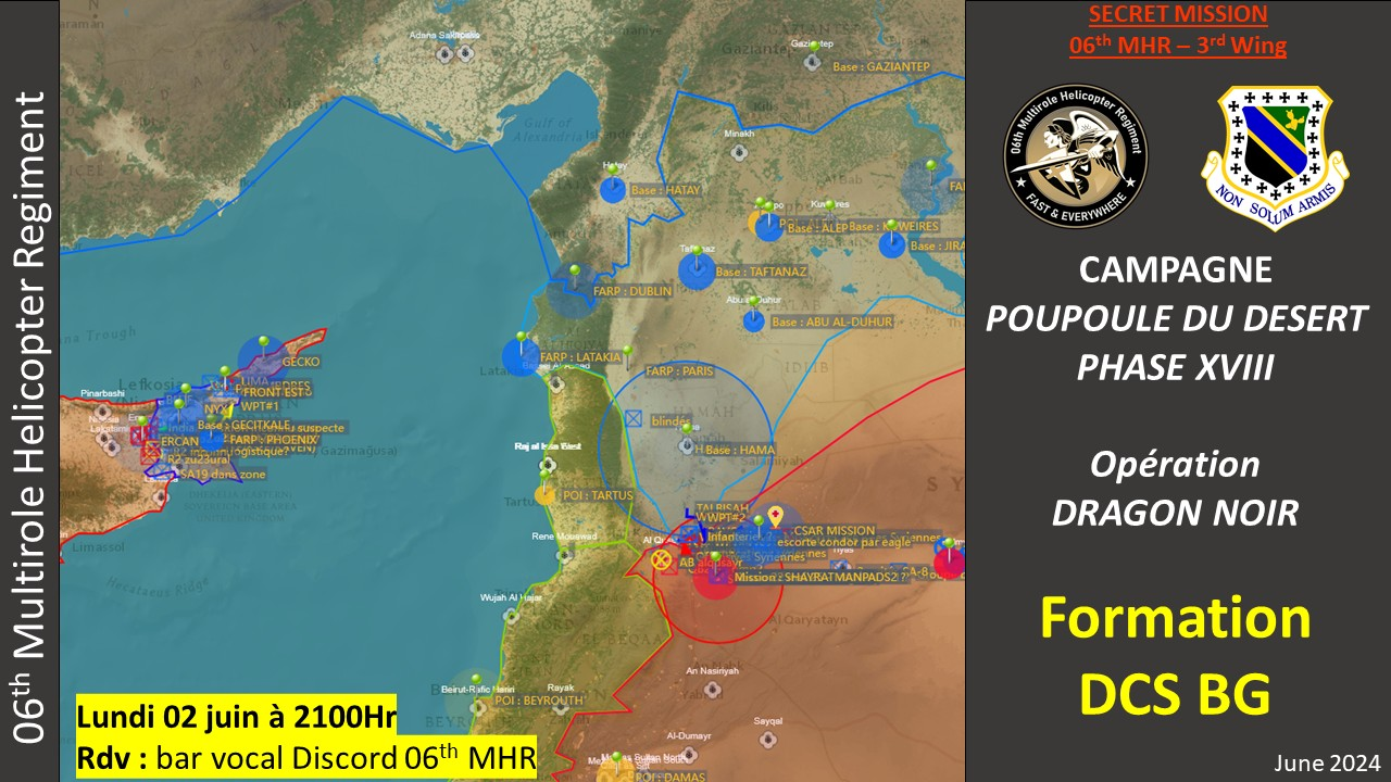 La mission a maintenant un nom : Dragon Noir ! La date limite d'inscription pour cette mission est le 31 MAI Pas de GAN présent lors de la mission Appareils libre (hélico inclus)