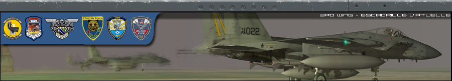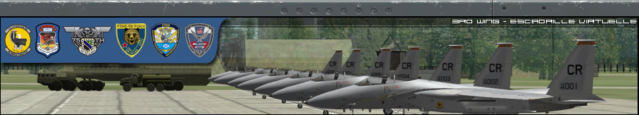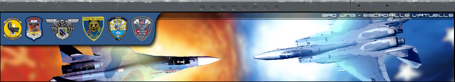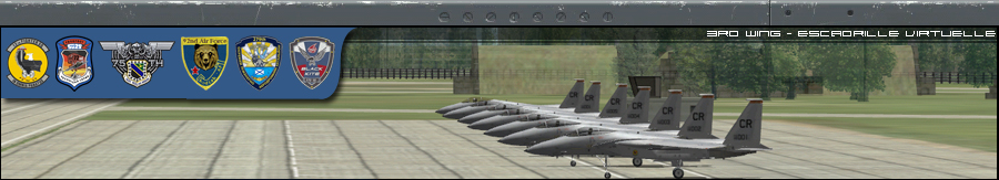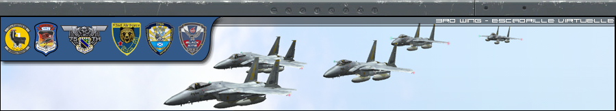 tes bann sont belles Doug, mais ca donne l'impression que la 3rd est une escadrille US only et F15 only, ce qui est loin d'etre le cas, je prefere l'idée de Magic ou alors faire une banniere par avion ca peut etre pas mal aussi en les faisant tourner, j'aime bien l'idée.