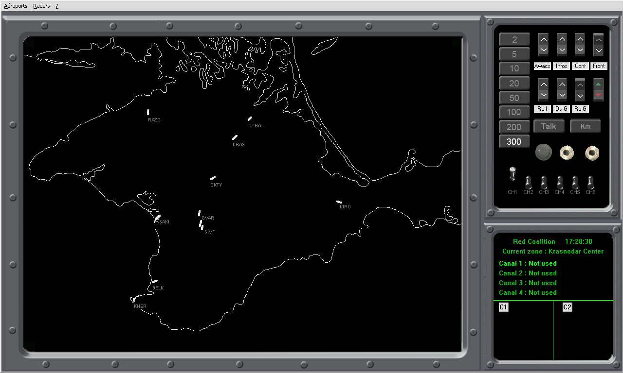 LOTATC 1.0 LOTATC .NET A la demande de Fanche, l'interface est bcp plus légère donnant plus de place au scope radar. Toujours dans cette perspective le zoom minimum donne une bonne vue d'ensemble de la carte de LockOn. La photo de LOTATC .NET n'est pas représentative de la GUI prévue. En effet, il manque: