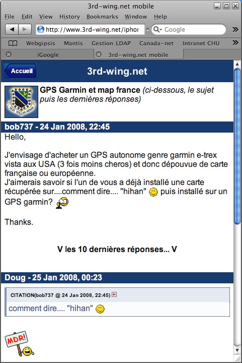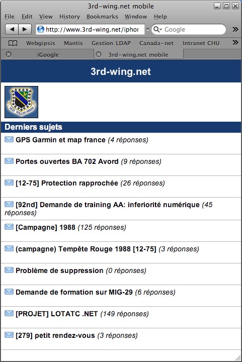 Pas de raison que comme tout site qui se respecte on n'ait pas notre version mobile (iphone) de la 3rd-wing.net. C'est désormais chose faite :