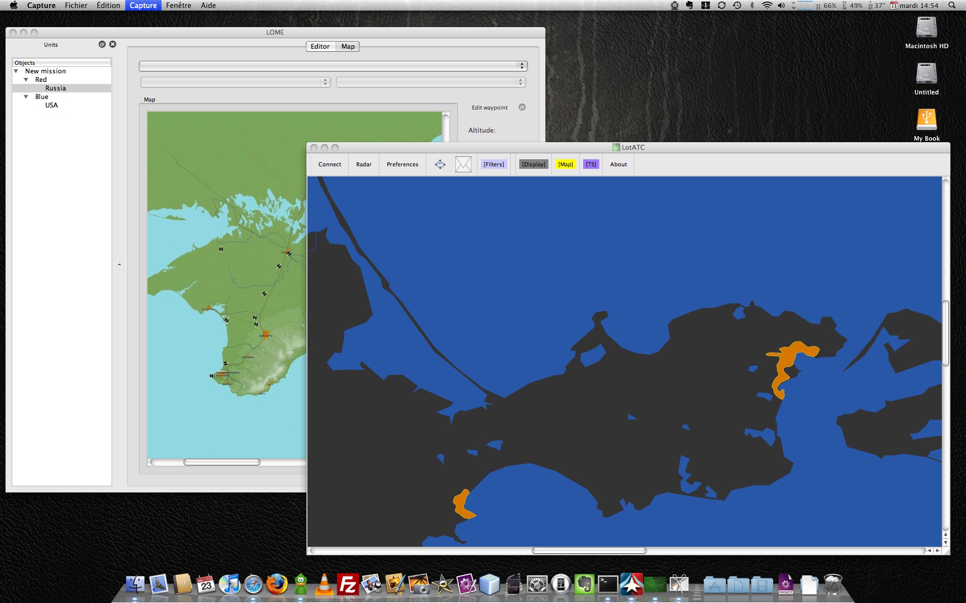 Les sources sont disponibles qqpart dans l'éventualité de le compiler sous mac ? Yep sous subversion comme LOME. svn://dartsite.org/lotatc/trunk Utilise le lotatc_client.py pour le client et lotatc_server_ui.py pour le serveur. Par contre, j'ai du changer de builder (pour compiler une version executable directement), donc je ne suis pas sur que cela marche encore avec py2exe (enfin l'équivalent sous mac Par contre en lançant directement le python (python lotatc_client.py par exemple), cela devrait fonctionner... La prochaine version de mon nouveau builder (pyinstaller) devrait apporter la gestion des Mac Comme d'hab, tiens moi au jus. --------------------
