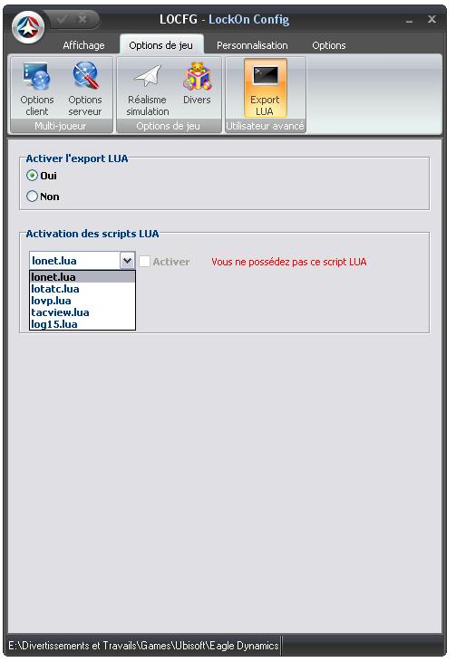 Les script d'export lua du "liocpserveur" n'apparaissent pas dans locfg c'est normal.