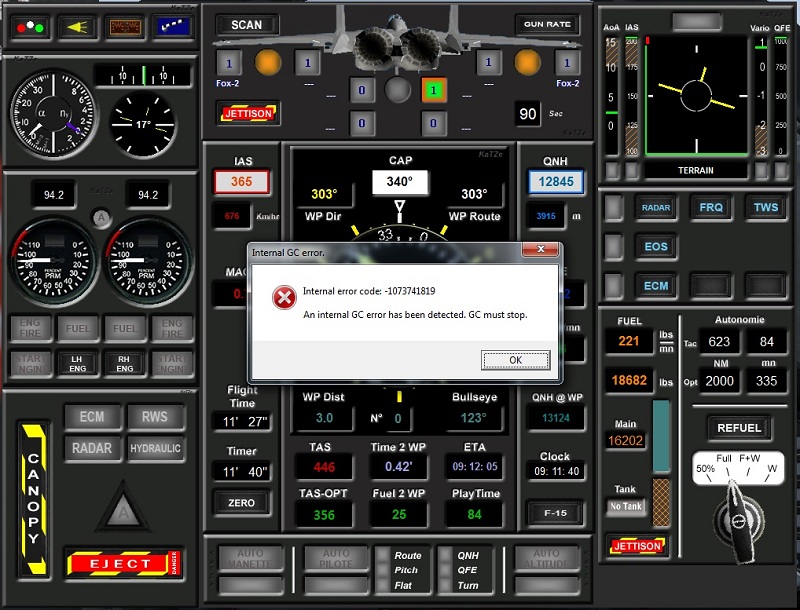 Pour ce qui est du changement d'écran Q1> Tu utilises bien le programme d'export v204 et la modif du KaTZe_05_00.ssi présente au post #43 (et aussi au premier post ?) Q2> Le panel armement fonctionne t'il ? Salut Katze, Navre de ne pas avoir pu donner signe de vie plus tôt I was busy. Quoiqu'il en soit vlà quelques news - problème de vue envole comme par magie, je dois avoue que j'étais à 2doigts de désinstalle FC2 (peut être a-t-il lu mes pensées a pris peur que cela ne se produise - réponse question 1: oui concernant export v204 et logiquement oui pour la modif du KaTZe_05_00.ssi Nb: dans le doute j'ai repris les 2fichiers et tester pas de probleme notamment vue. - réponse question 2: pas sure Cependant j'ai un news probleme décidément je suis un mec à ennuie Vla le msg Personne ne sait ce que ce msg d'erreur et manip à faire pour le resoudre? Dans l'attente de reponse, Merci Ce message a été modifié par Maverick/Goose - 1 Aug 2010, 03:53. |